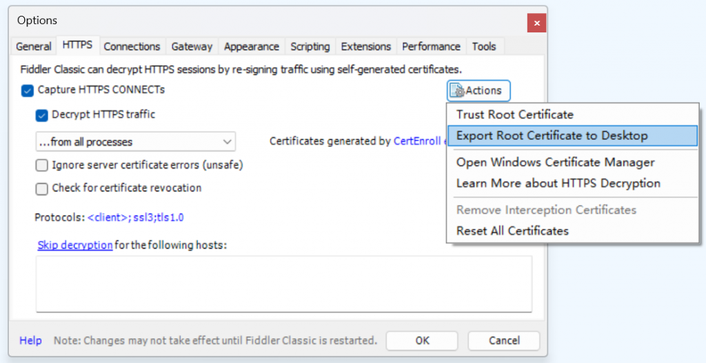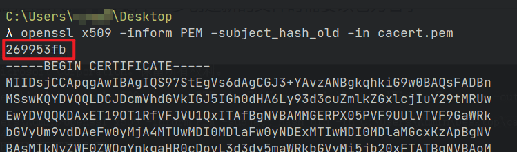 openssl x509 -inform DER -in FiddlerRoot.cer -out cacert.pem